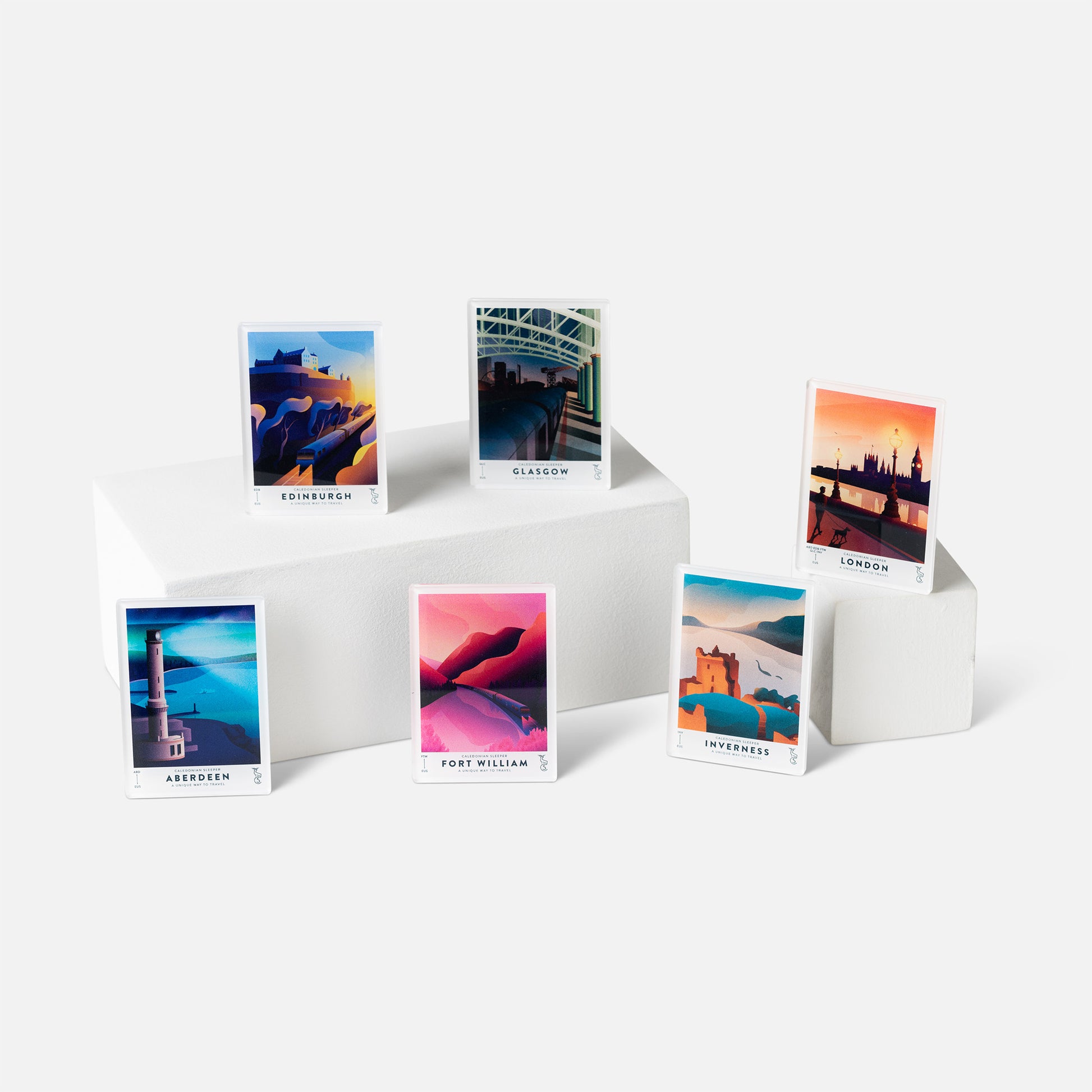 Add a touch of personality to your kitchen with our vibrant acrylic fridge magnets featuring a choice of six vintage railway style illustrations featuring some of Caledonian Sleeper’s most popular destinations.
